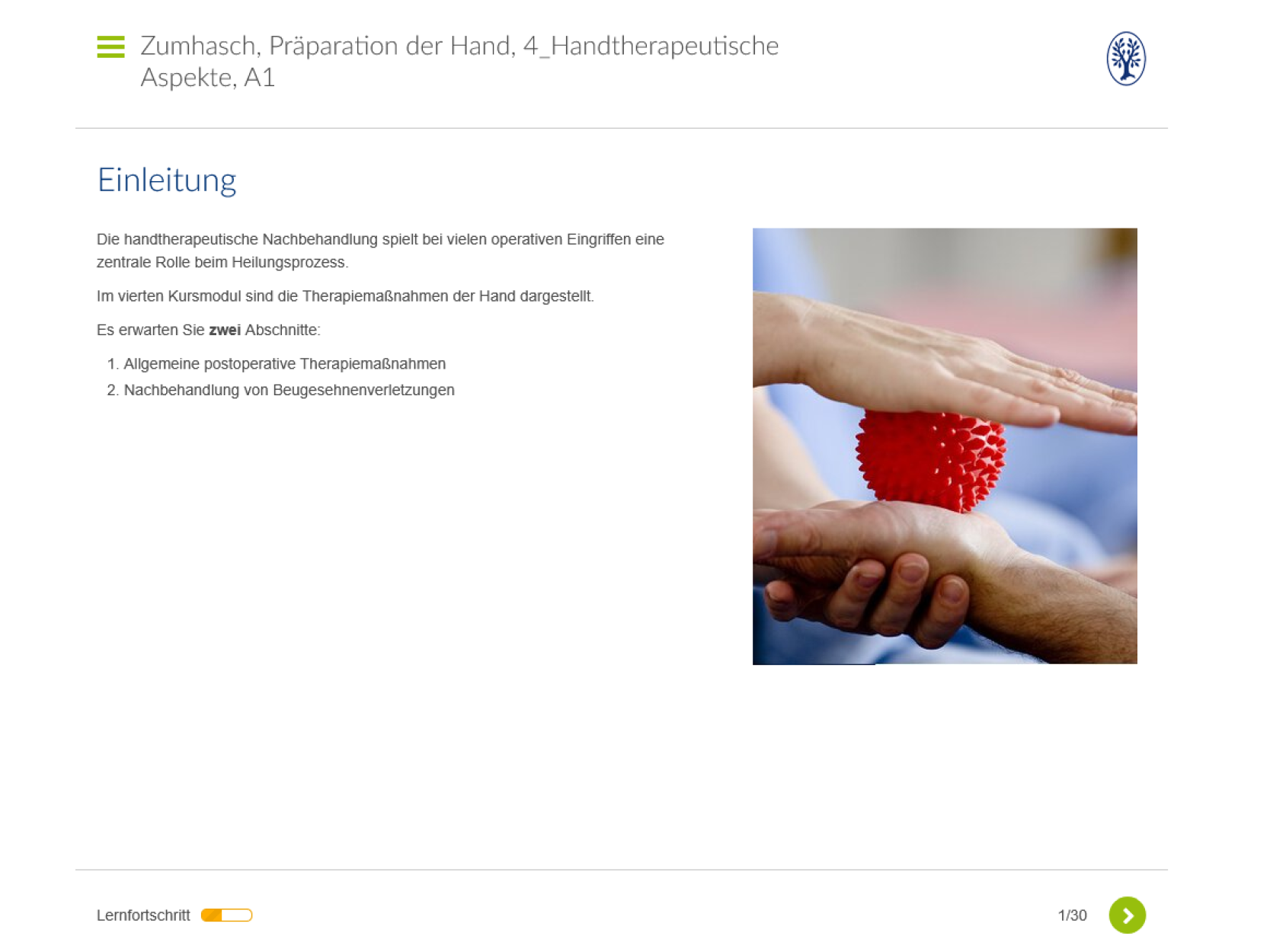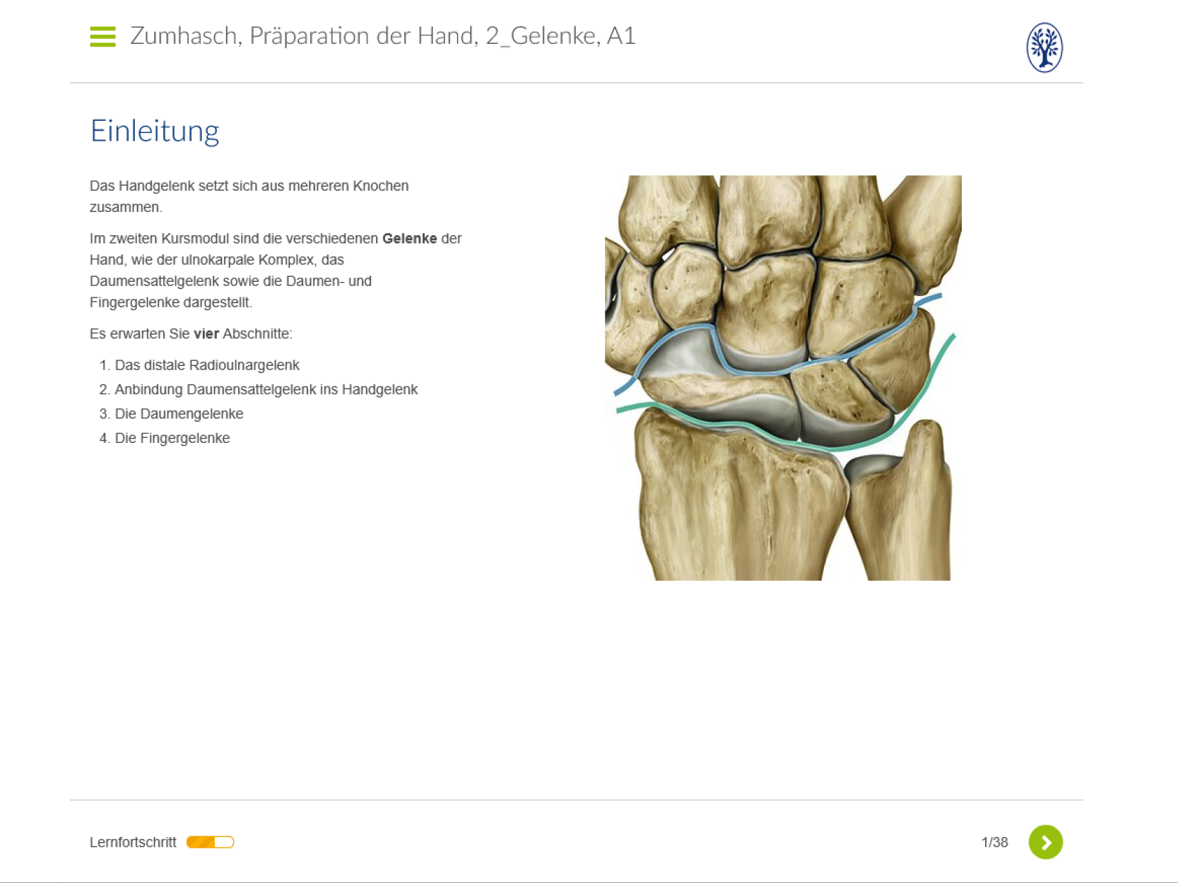Der Online-Fortbildungskurs „Präparation der Hand“ bietet eine komfortable Alternative: Er vermittelt anschaulich die Anatomie, Strukturen und Funktionen der Hand anhand realer Präparate.