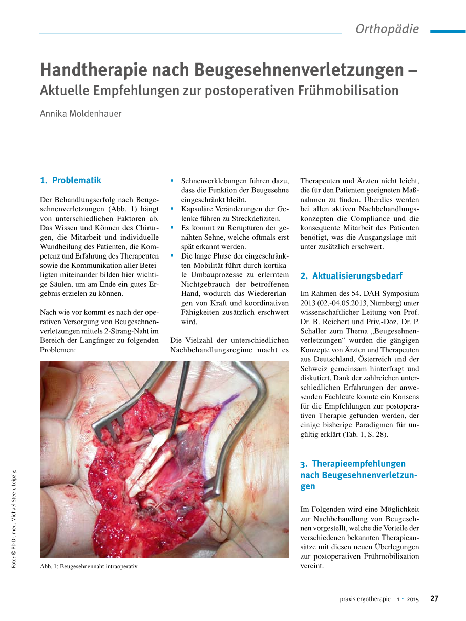 Der Fachartikel von Annika Moldenhauer mit dem Titel „Handtherapie nach Beugesehnenverletzungen – Aktuelle Empfehlungen zur postoperativen Frühmobilisation“ beschreibt ein modernes, praxisorientiertes Konzept zur Frühmobilisation nach Sehnenverletzungen der Hand.