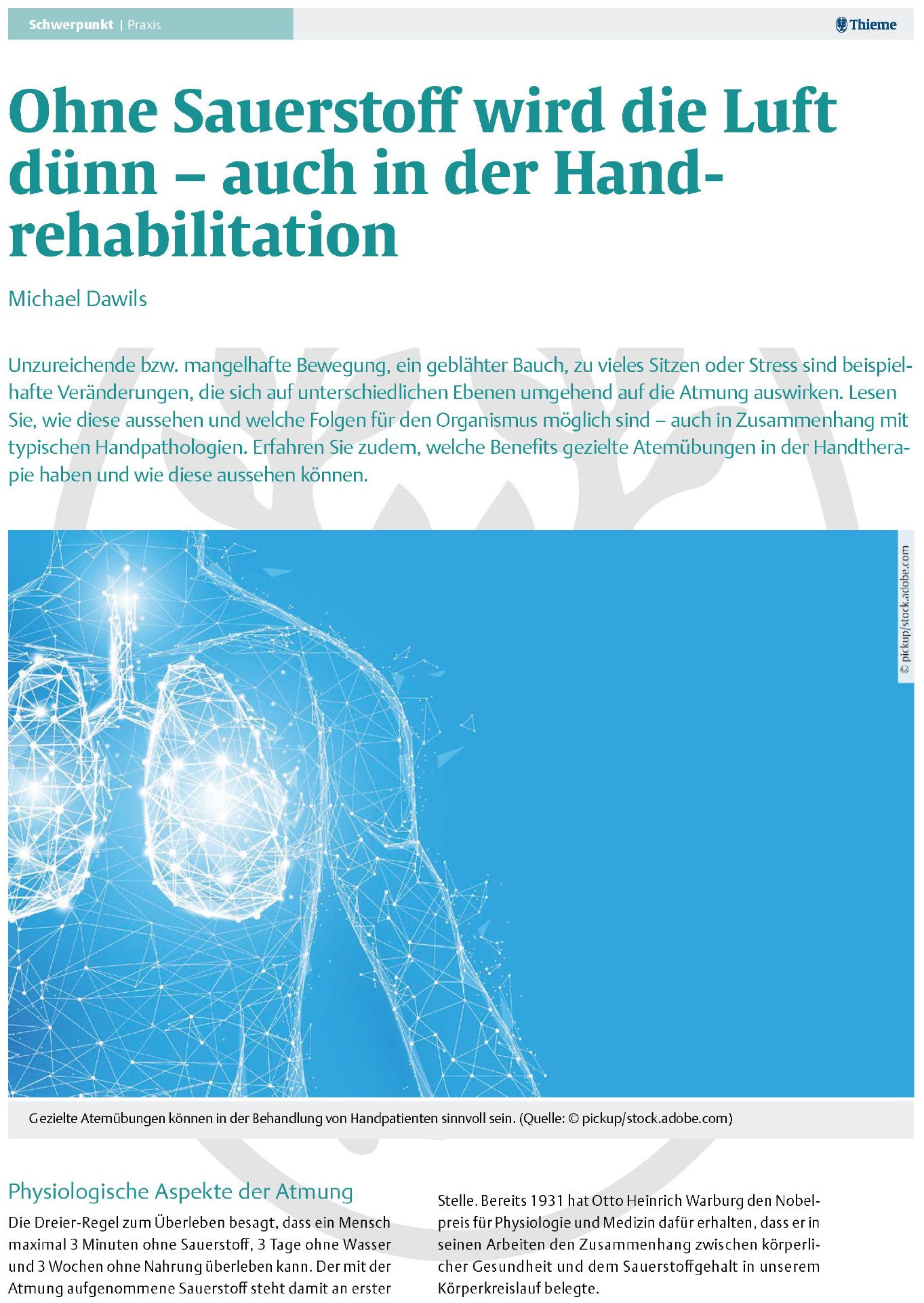 Ein Beitrag von Michael Dawils, erschienen in "Praxis Handreha", Ausgabe 04/2023, der Fachzeitschrift des "Thieme Verlags".